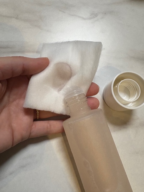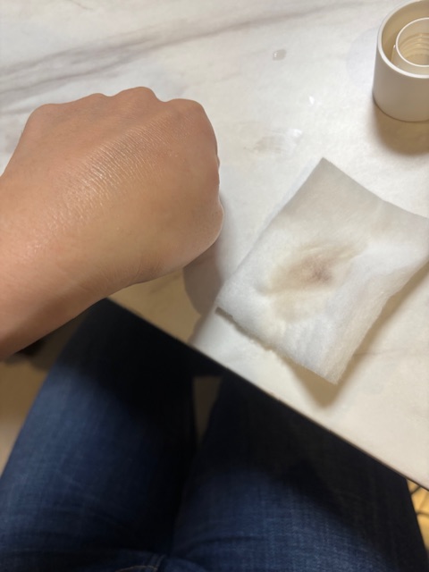 染み込ませたコットンを、肌の上に3秒くらい置いてから、こすると、